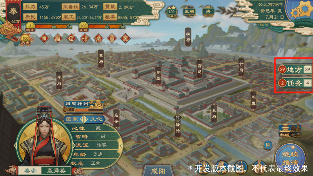值得一提的是,针对此前呼声极高的女帝系统,本次更新还将带来特殊奇观——娲皇宫。(AI势力无法建造娲皇宫,在玩家不主动建造娲皇宫的情况下,局内将不会出现女性君主)娲皇宫建造完成后,与国君同姓同氏的未婚配女性宗亲可以被立为储君,继而继任为君主。