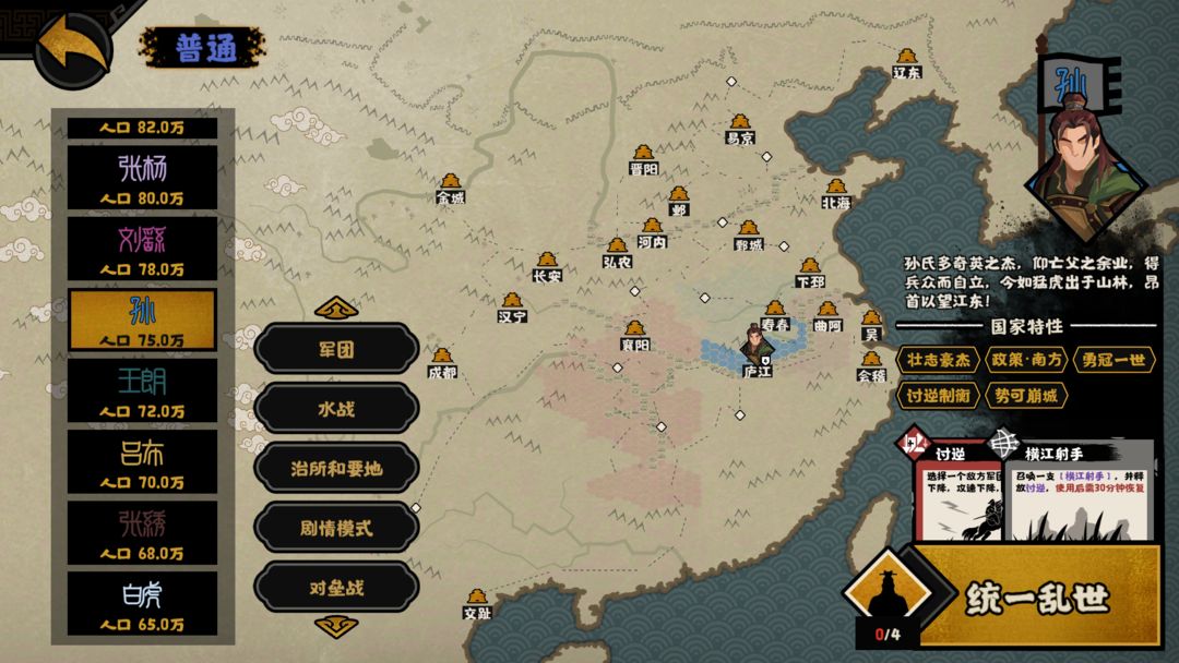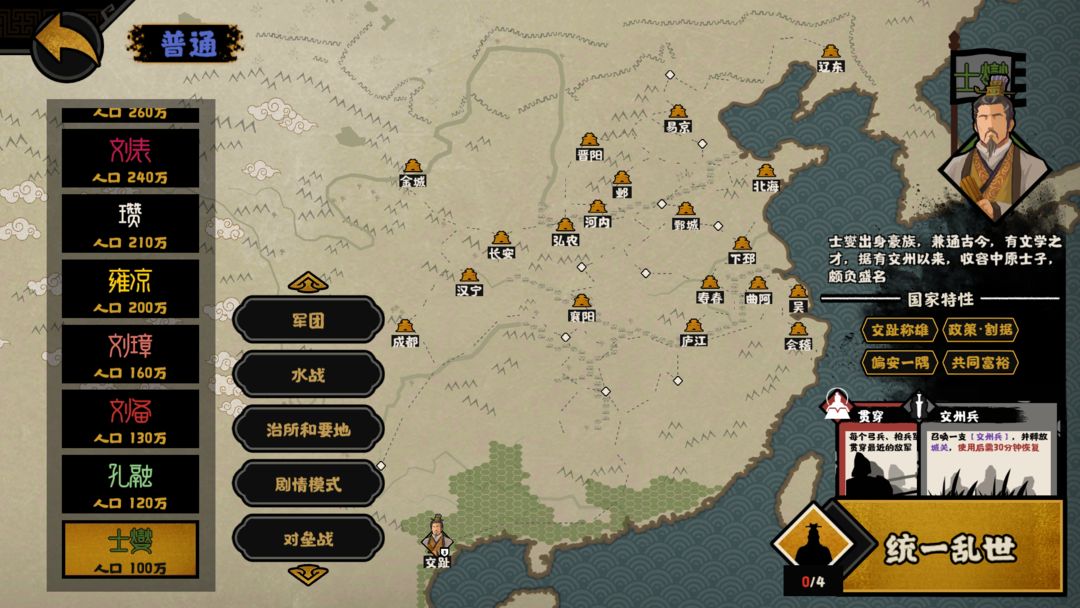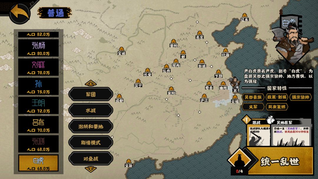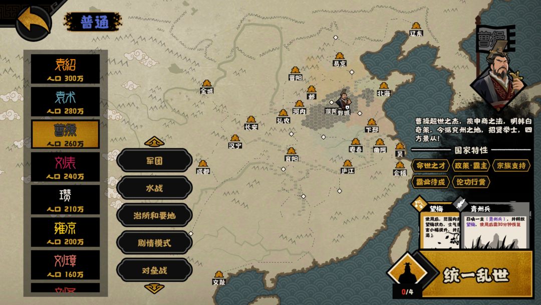 《无悔华夏》在8月11日汉末三国版本更新时,将开放第一批可游玩势力,全新的八位势力可供王上们选择——刘备、曹操、雍凉、士燮、王朗、瓒、孙、白虎。初始需通关刘备或曹操势力后可解锁其他势力。