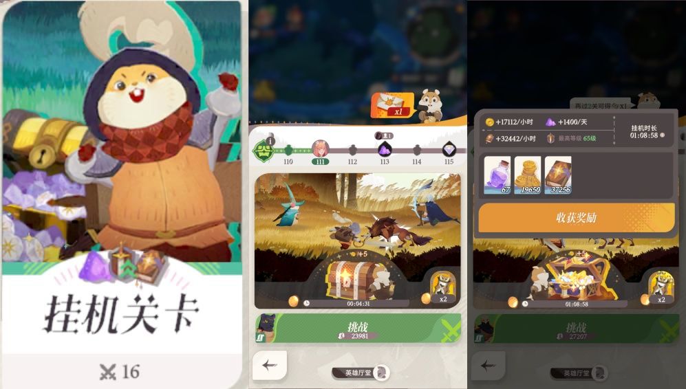 时间:全程开放,挂机可得收益,时长受限。提升关卡层数增奖励与时长,每日可用50钻购120分钟收益。30关后可选后台托管。